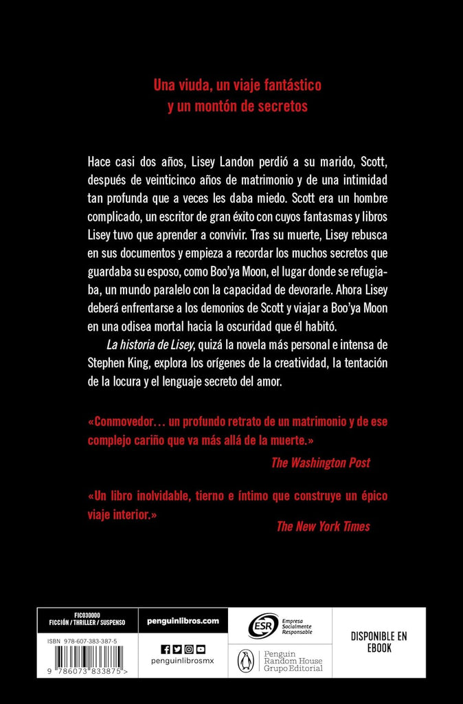 Lisey Landon, viuda de Scott Landon, un exitoso y complejo escritor, enfrenta el duelo tras veinticinco años de matrimonio. Al revisar los documentos de su esposo, descubre secretos que la llevan a Boo’ya Moon, un mundo paralelo que Scott utilizaba como refugio. Este viaje la confronta con los demonios de su esposo y la sumerge en una odisea hacia la oscuridad que él habitó.
