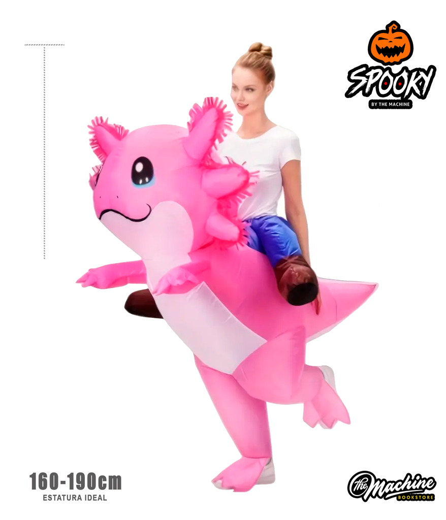 El disfraz inflable de ajolote montable es una prenda divertida y llamativa que simula estar montado sobre un ajolote. Ideal para fiestas y eventos, aporta un toque único y juguetón a cualquier ocasión. Su diseño inflable ofrece volumen y comodidad para moverte con facilidad mientras destacas.