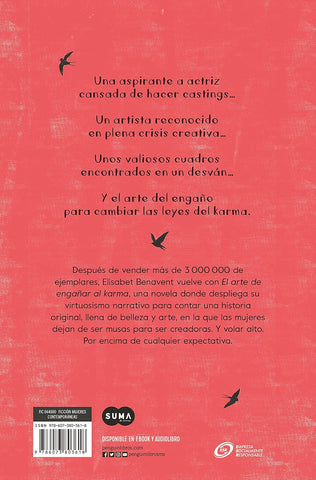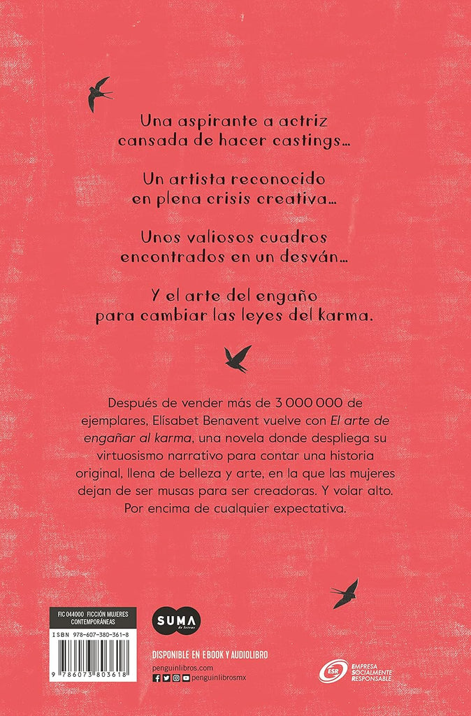 En El arte de engañar al karma, Elísabet Benavent presenta a una aspirante a actriz harta de rechazos y a un artista en plena crisis creativa. El hallazgo de unos cuadros olvidados los unirá en una trama de secretos, pasión y redención, donde el arte se convierte en el motor para cambiar sus destinos.